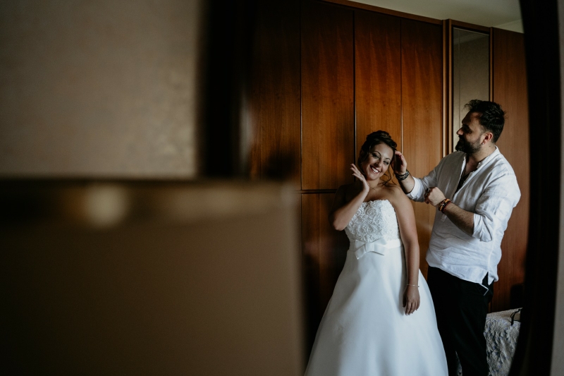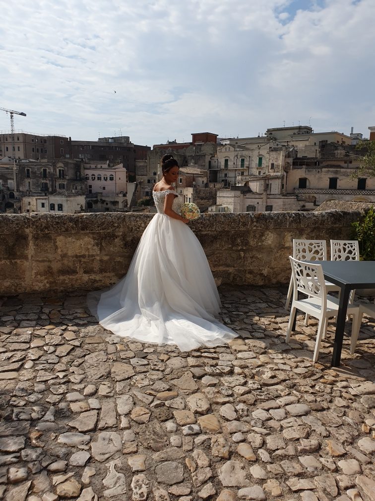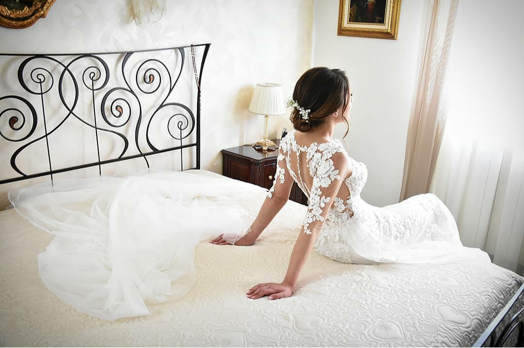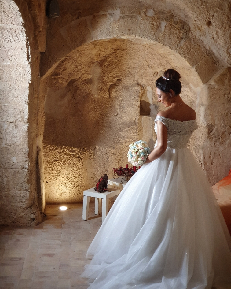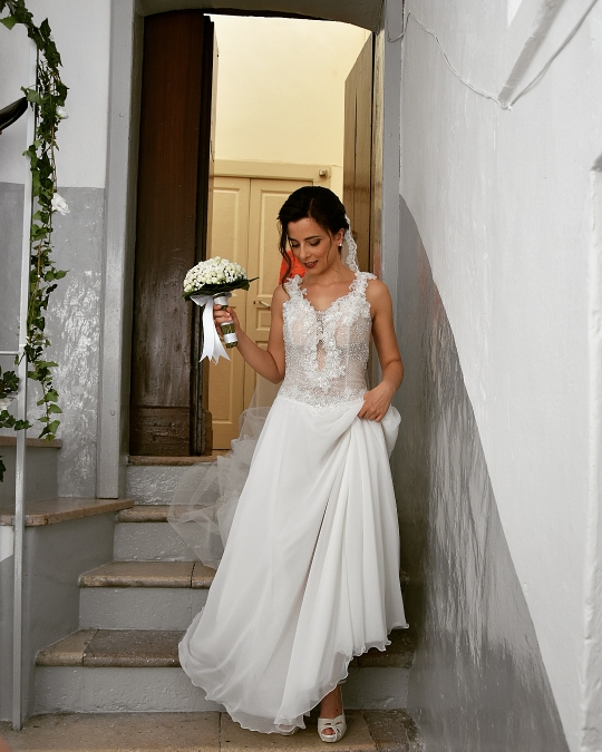 La “proteggeremo e accompagneremo” sino a che da casa non si rechi in chiesa e…come dico a tutte le nostre Spose…ci vediamo stasera! Già…perché per Noi non c’è Sposa perfetta senza cambio look serale per il taglio della torta, dove da li si delinea in maniera raffinata la seconda veste della vostra festa!