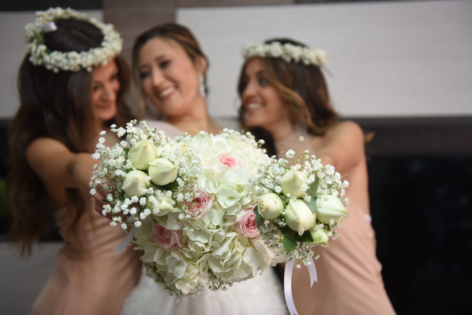 BRIDESMAIDES : per 2/3 damigelle (ad ognuna la propria acconciatura, scelta assieme alla Sposa). Questa soluzione offre la creazione di un’unica storia tra Sposa e Damigelle.